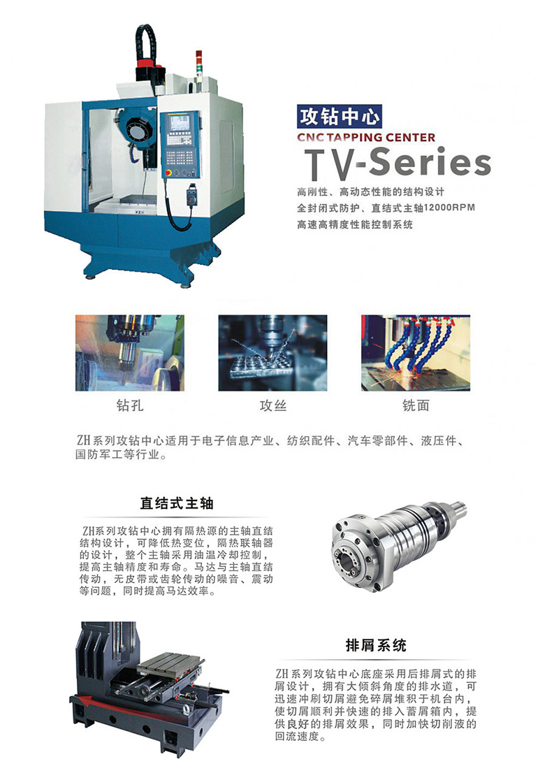 數(shù)控鉆攻中心特點(diǎn)適合小型零件多工作面的銑、鉆、鏜、鉸、攻絲、兩維、三維面等多工序加工。
