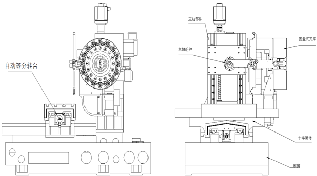 此型號(hào)為定柱式臥式數(shù)控銑床(經(jīng)濟(jì)型) 24T圓盤刀庫(kù)。